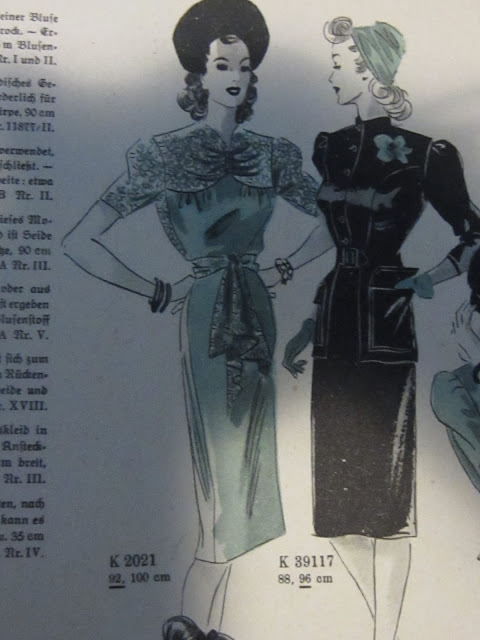 Deutsche Moden Zeitung or the German Fashion Magazine in English is my very first, German fashion magazine. It's year? 1940. Place of Publication? I thin it is Berlin so this is very high German fashion from what I can gather. I found it on ebay over the summer as a part of a little retail therapy and to broaden my horizons of German fashion and patterns. This is not the first time I have looked at buying this magazine, it is the first time I have decided to try to tackle it though because the patterns are like nothing you have seen before. Here, take look: